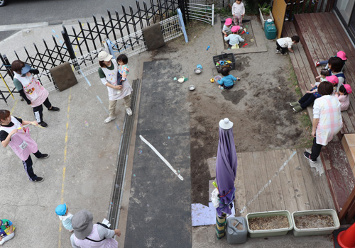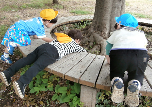 いちご、おまめ、ことり(一部)は、園庭で