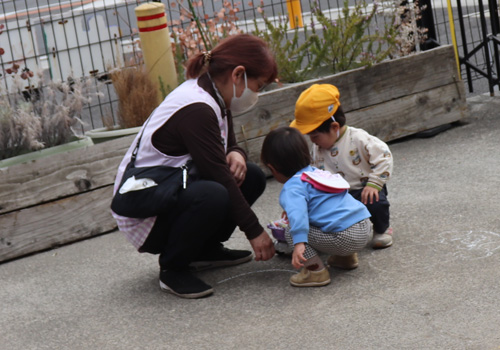 園庭で チョーク画伯が・・・