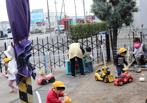 砂場やまめ自動車で遊んでいました。にんじんさんもIKOZA裏の3号公園までいってきたようです。まさに春を思わせる上着なしの一日でした。