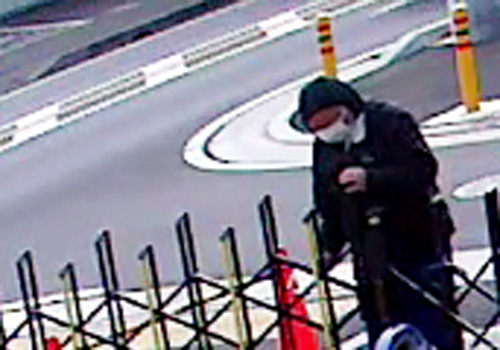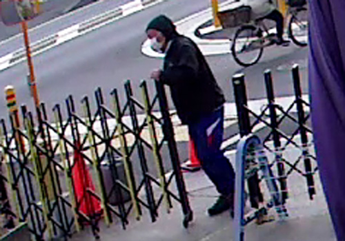以下、防犯カメラの録画画面から。フェンスをガサガサ、ガラガラと開け始める。