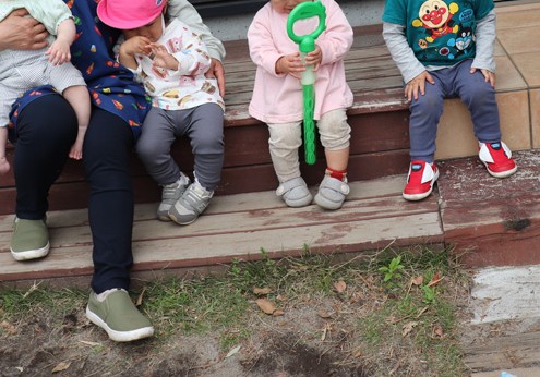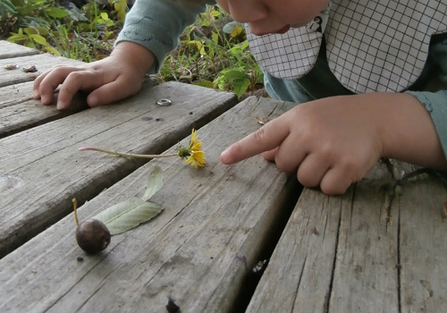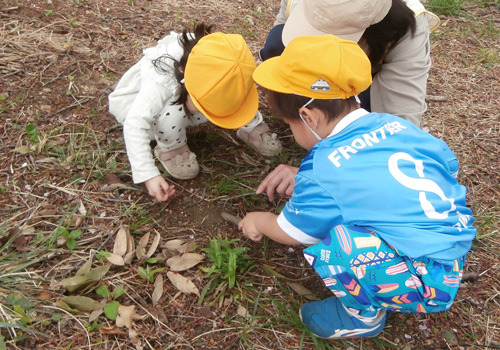 いちご、おまめ、ことり(一部)は、園庭で