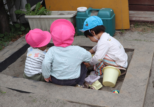 砂場に集中!